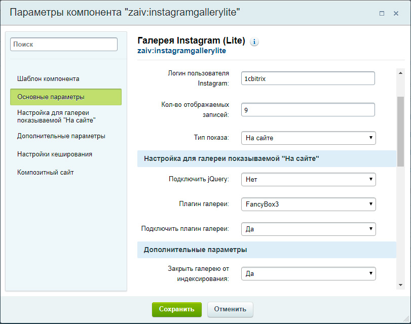 Установка и настройка модуля "Галерея Инстаграм LITE"