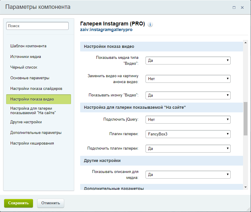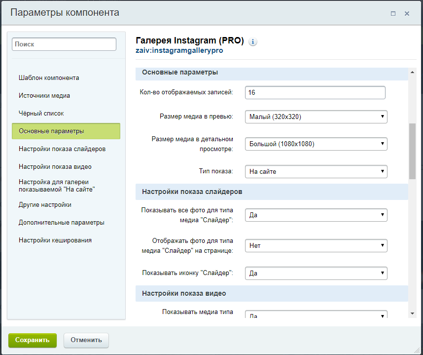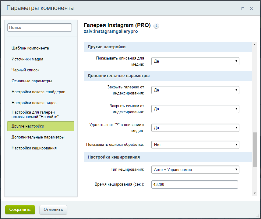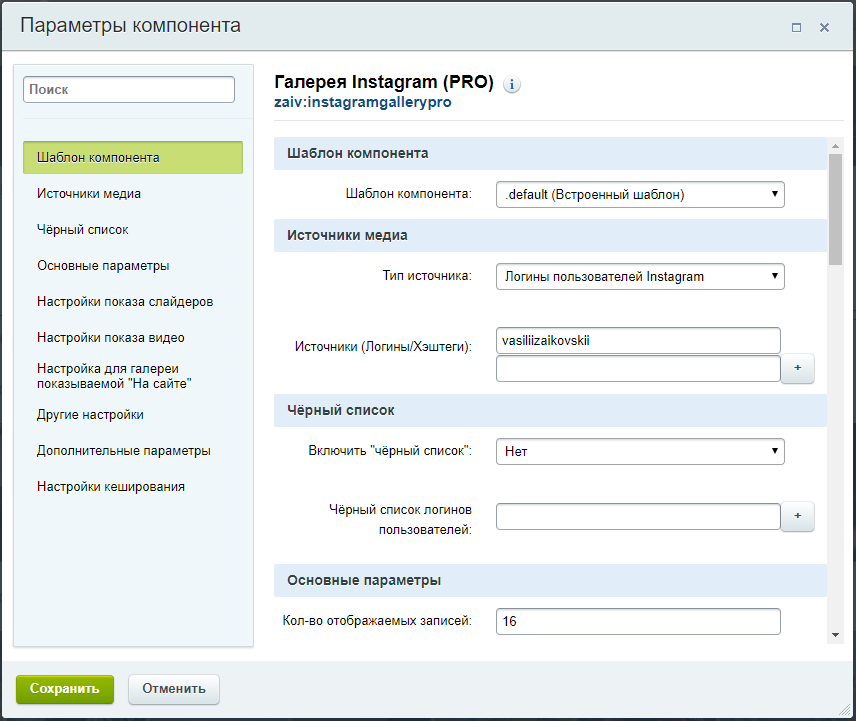 Установка и настройка модуля "Галерея Инстаграм PRO"