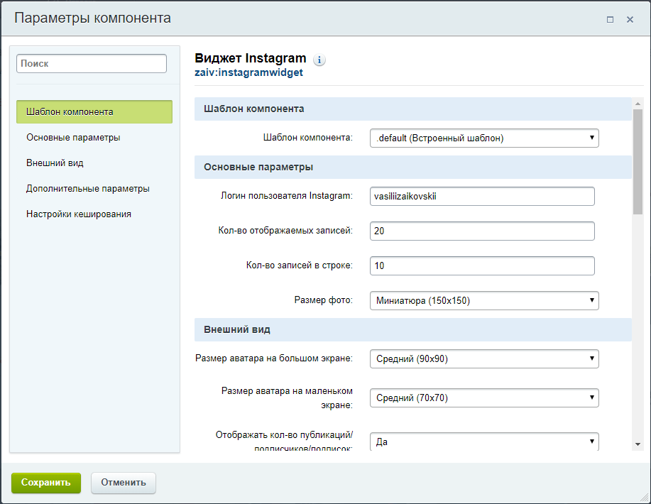 Установка и настройка модуля "Виджет Инстаграм"